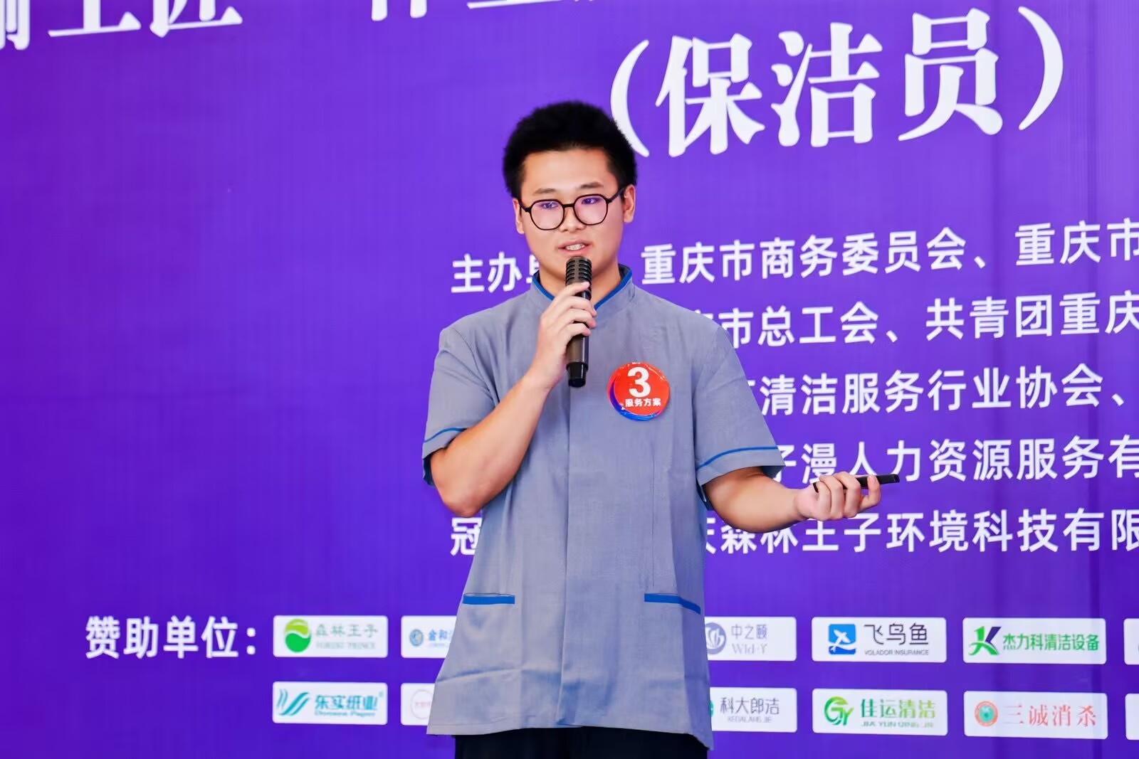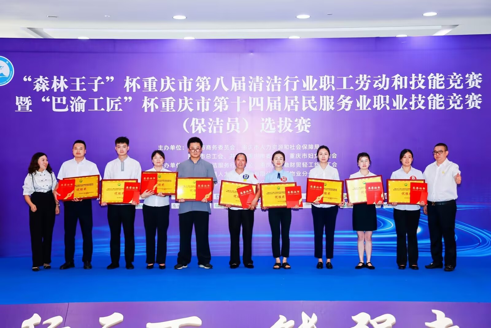 2025年7月30日,“森林王子杯”重庆市第八届清洁行业职工劳动和技能竞赛暨“巴渝工匠”杯第十四届重庆市居民服务业职业技能竞赛(保洁员)选拔赛在重庆人力资源服务产业园南区二层多功能厅顺利举办。yl7703永利官网选派智慧康养学院2023级现代物业管理专业三名选手(周琦琦,刘蹬帮,陈羽佳)参赛,凭借出色表现斩获团队优胜奖。