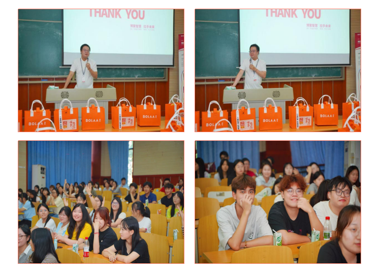 活动中,博拉智算事业部总经理陈颢予从行业趋势、公司核心业务以及重点项目案例三个关键维度切入,全方位、多角度地展示了公司在短视频内容策划与流量运营、本地生活商家数字化运营、跨境电商供应链整合以及AI智能算法领域的卓越优势。他的讲解深入浅出、生动鲜活,使学生们仿佛置身于真实的商业战场之中,直观感受到了专业技能在企业中的实际应用场景,有效实现了“校园所学”与“企业所需”的紧密衔接。