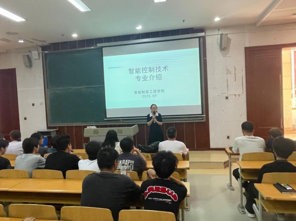 会议由智能控制教研室主任王雪琴主持,智能控制教研室全体教师、辅导员以及被2025级智能控制技术专业新生共同参与。