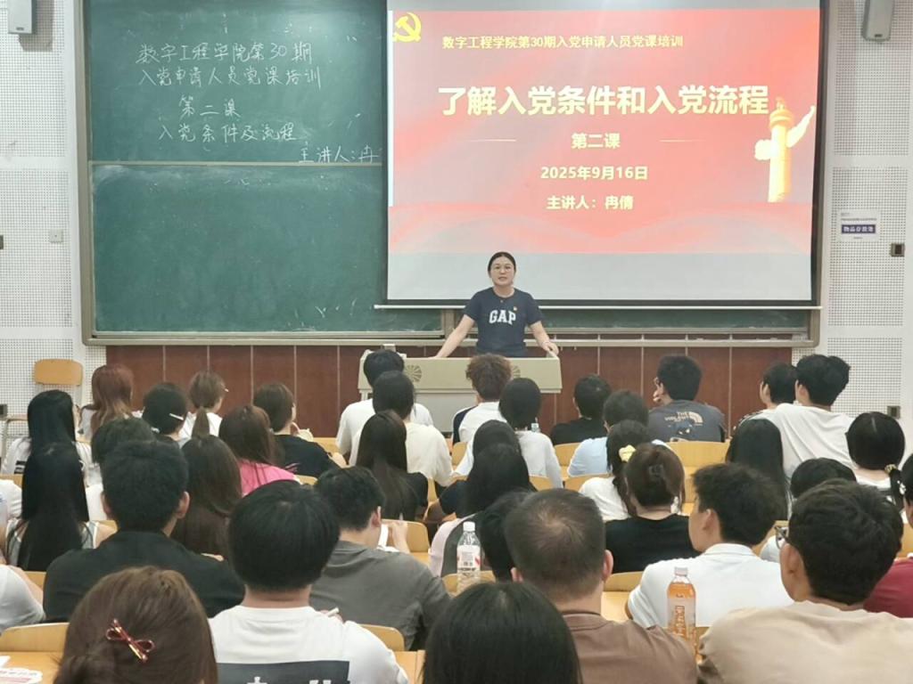 2025年09月16日12时20分,数字工程学院党支部第30期入党申请人培训第二讲在2305教室如期举行。本次培训以“了解入党条件和入党流程”为主题,由数字工程学院党支部冉倩同志担任主讲人,旨在帮助入党申请人系统掌握入党关键知识,务实思想基础。