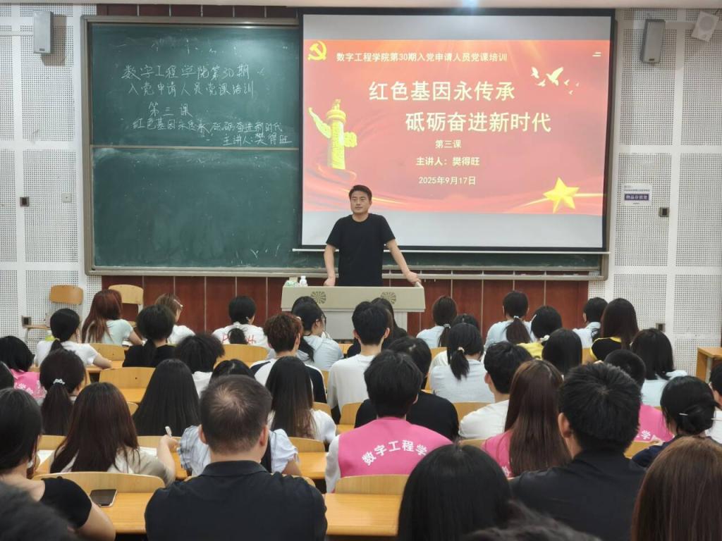为深入传承红色基因,引导入党申请人员坚定理想信念、明晰使命担当,2025年09月17日12时20分,数字工程学院党支部第30期入党申请人培训第三讲在2305教室如期举行。本次培训以“红色基因永传承,砥砺奋进新时代”为主题,由数字工程学院党支部宣传委员樊得旺同志担任主讲人。