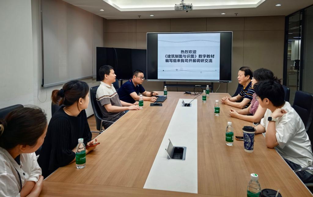 本次考察交流聚焦于建筑设计教育创新与行业标准实践的协同发展。座谈会上,何培斌教授率先介绍了数字化教材《建筑制图与识图》的编写进展,并就“十五五”国家规划教材申报事宜,表达了与重庆市设计院开展校企合作的初步构想。随后,双方领导共同研读了“十五五”国规教材申报的相关政策文件,为后续合作申报奠定了坚实基础。